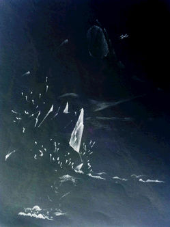 This was not to last - a time came when there was a terrible pause. The gulls made themselves scarce, as a gathering cloud of doom approached. The little red crab waited, its pincers poised, staring at the endless horizon of water. The waves grew and swelled and turned violent. The little red crab ran for cover into a hole in a rock, just as the sky split open and poured all of its contents out with a crack and a roar.